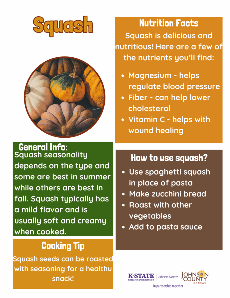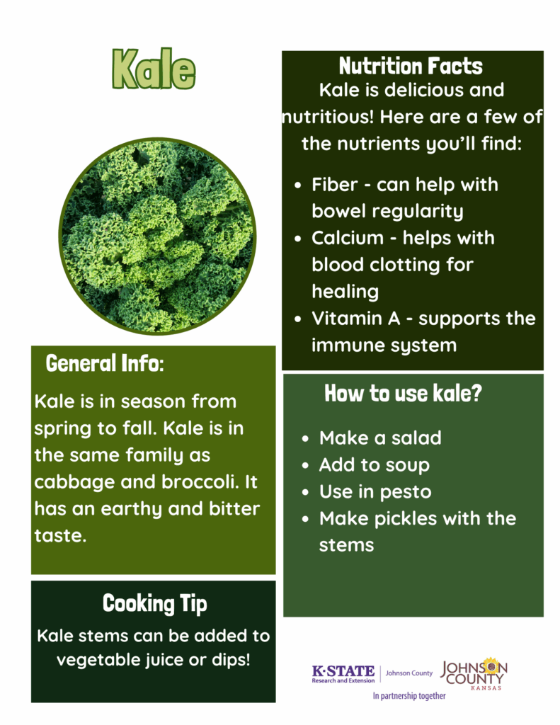 Knowing what is in season allows you to plan your meals, manage your grocery budget, and find peak quality produce. K-State Research and Extension has a resource that helps you navigate what is in season locally.
